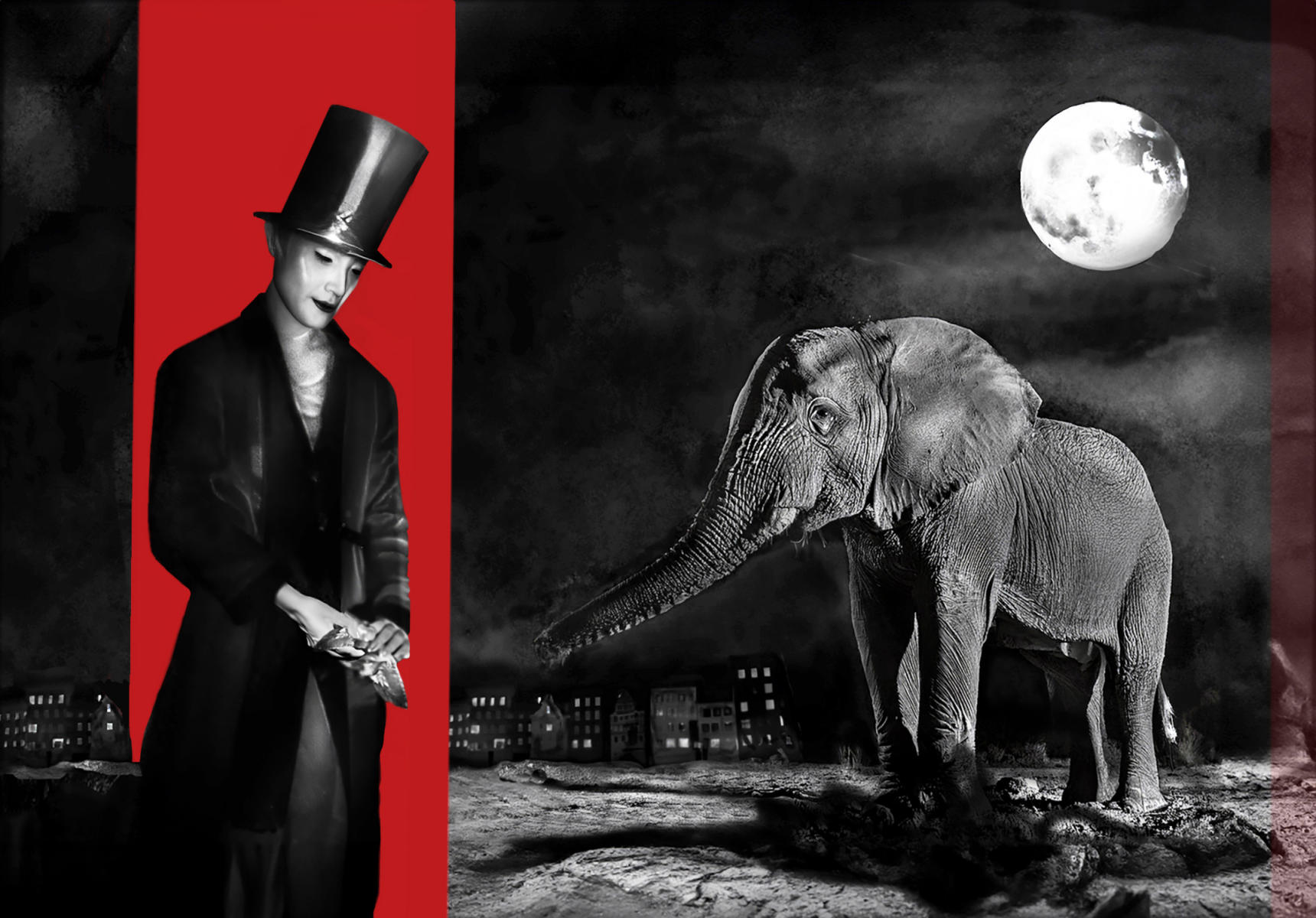 Lady and the Elephant 2009 r4, Nikon F, silver halide, AI assisted,digitally edited in Photoshop East Hollywood,