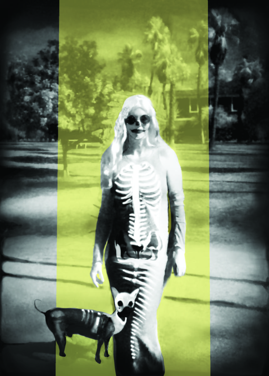 Yellow Stripe, Lady with Pet dog,2021 r10